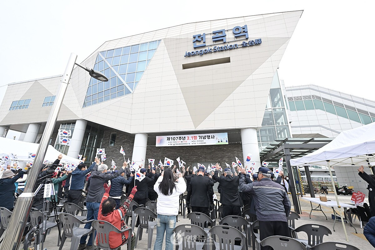 제107주년 3.1절을 맞아 순국선열들의 숭고한 희생정신을 기리고 나라 사랑의 마음을 하나로 모으는 뜨거운 함성이 연천 전곡역 광장에 울려 퍼졌다.